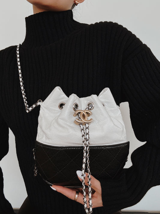 Chanel Gabrielle White & Black Quilted Leather Bucket Bag (2017)