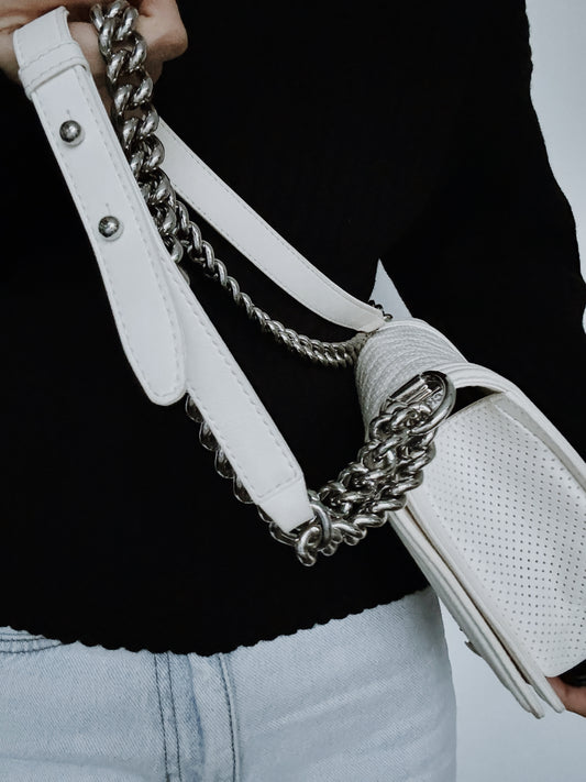 Chanel Medium Boy Bag in White Perforated Lambskin Leather (2014)