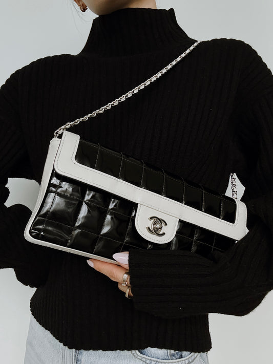 Vintage Chanel East West Chocolate Bar Patent Leather Shoulder Bag (2000-2002)